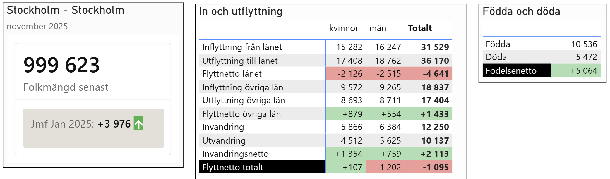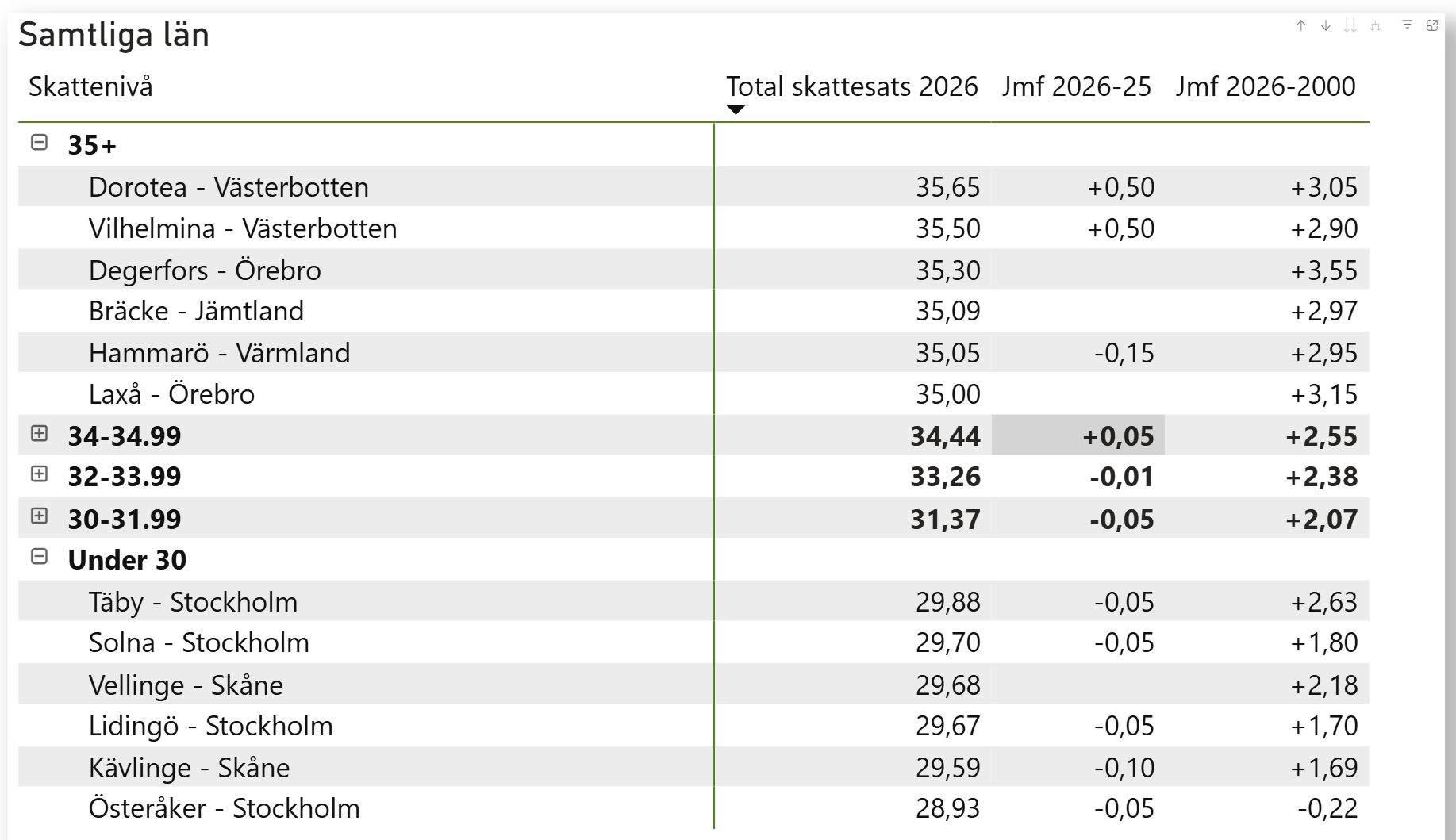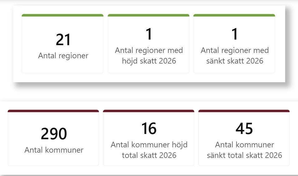 Bild 1. Årlig förändring i utsläpp (grönt = bra, rött = dåligt)