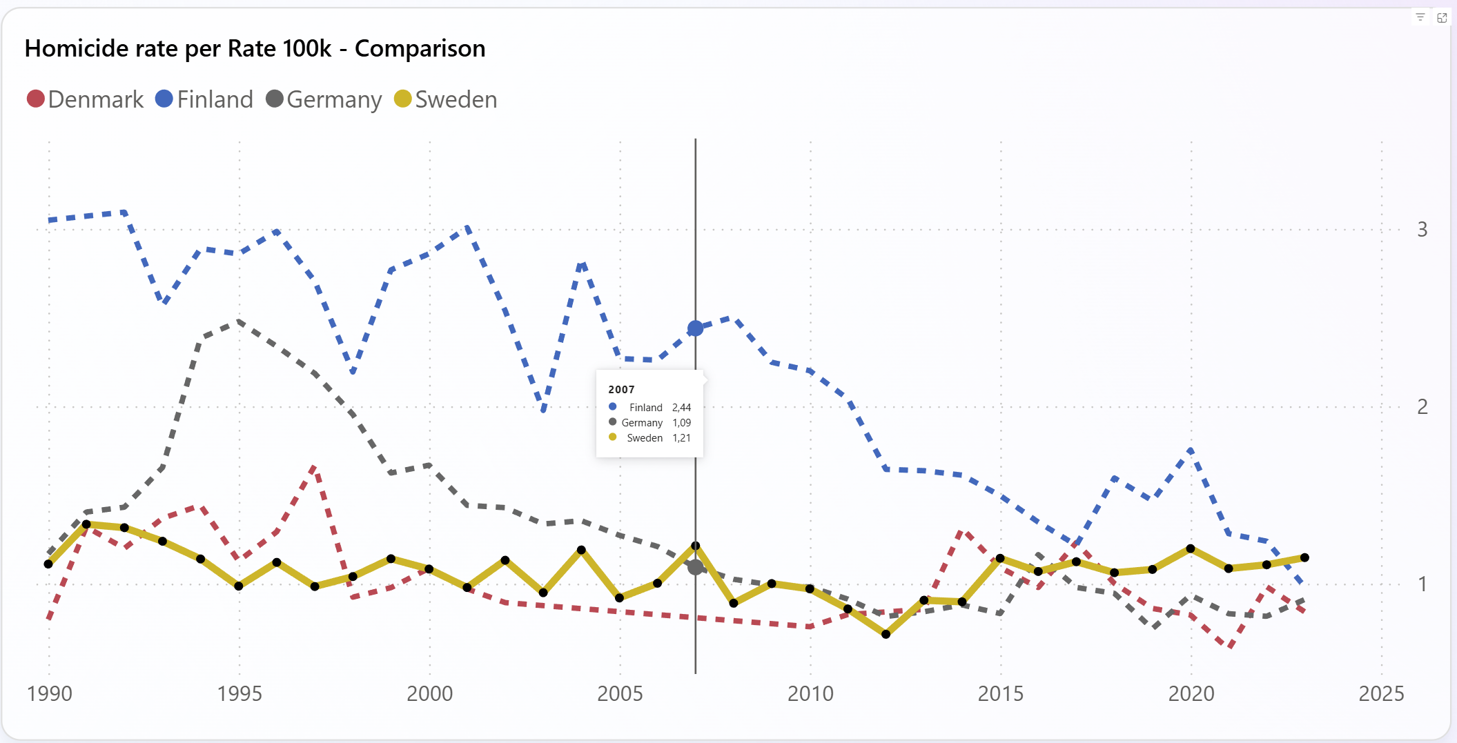 Klicka här för att komma till rapporten och kanske kan du bidra med några förklaringar. Väl inne i rapporten ser du en jämförelse mellan regioner och länder från OurWorldInData.