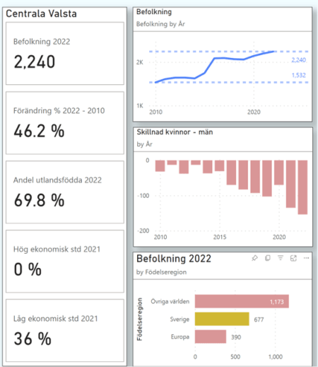 SCB har demografiska och ekonomiska data ner på detaljnivå för så kallade regionala och demografiska statistikområden. Här ser ni ett exempel på vad man kan åstadkomma med denna data och Power BI: