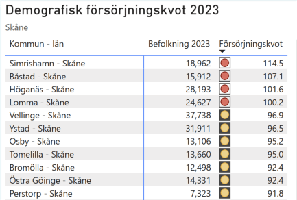 Att våra glesbygdskommuner med utmanande demografi skulle ha höga kvoter var förväntat, men nedanstående filtrering på kommuner i Skåne förvånade mig.