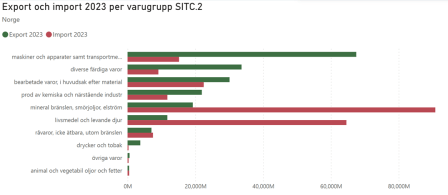 Som väntat visar nedanstående diagram att vi säljer maskiner och teknik till Norge och importerar olja och fisk.