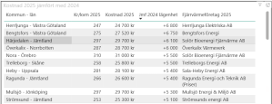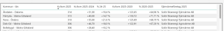 Nedanstående kommuner har det tveksamma nöjet över att toppa ligan på högst höjning i kronor mellan 2024-2025. Prisexempel 100 kvm bostadsyta.