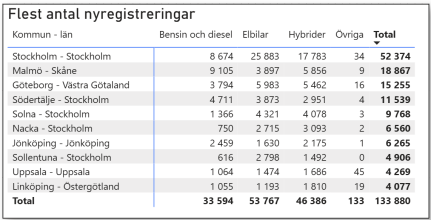I kommunligan över flest nyregistrerade hamnade självfallet de största kommunerna i topp. I Stockholm har 83 procent av fordonen någon form av eldrift.