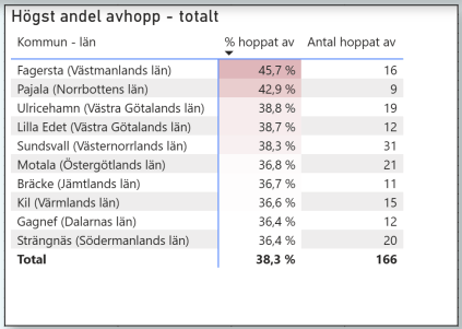 Bild 4. Kommuner med högst andel avhoppade 2018-2022.