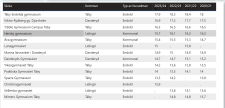 Bild 2. Betyg läsåret 23/24 i gymnasieskolor i Danderyd, Lindingö och Täby.