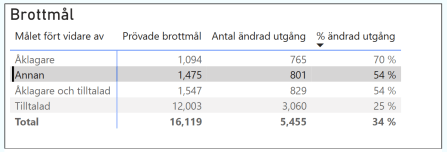 När åklagarna överklagar ett mål till hovrätten ger hovrätten en ändrad som i 70 % av fallen (2024). När den tilltalade överklagar ändras domen endast i 25 % av fallen. I rapporten kan du se siffor från respektive hovrätt.