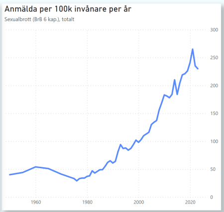 Bild 2. Antal anmälda sexualbrott per 100 000 invånare.