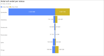 SCB publicerar statik över människors status på arbetsmarknaden och deras huvudsakliga inkomstkälla. Med hjälp av Power BI kan vi få grepp över både antal och andel inom de olika klassificeringarna.