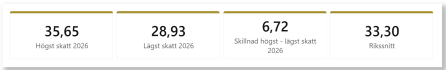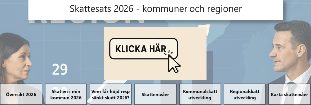 Nu är det nya skattesatserna för kommunalskatten 2026 presenterade. Det vi kallar kommunalskatt är egentligen två olika skattesatser till kommunen respektive regionen. Grovt sett går 2/3 av skatten till kommunen och 1/3 till regionen.