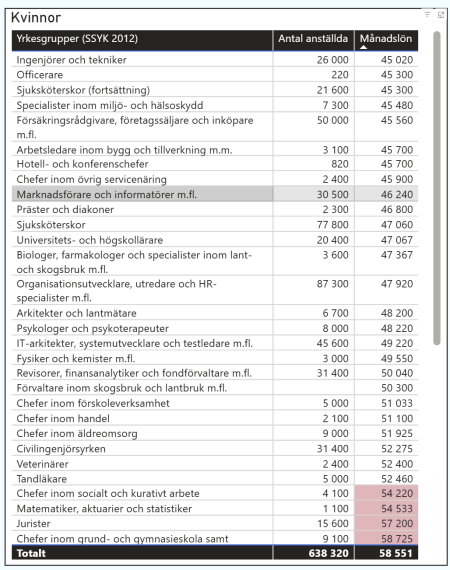 Nedan visas lönetabellen för kvinnor (ja, det skiljer mellan kvinnor och män vilket ni kan se inne i rapporten).