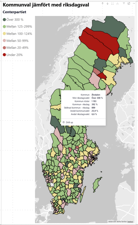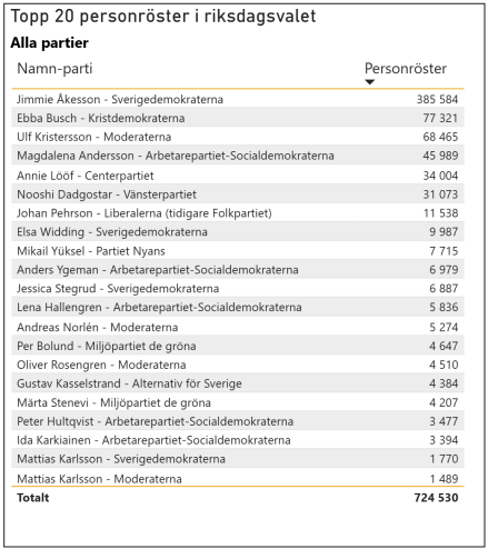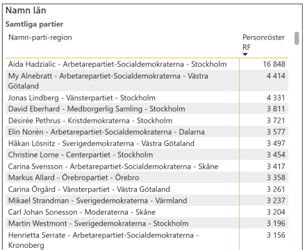 Med data från Valmyndigheten och Power BI kan vi se vilka som fått röster per parti i riksdags-, region- och kommunalval.